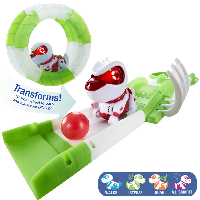 - There are 4 cool characters plus playsets to collect including: Puppy, Kitty, Racoon and Dinosaur! Characters will zoom around and have sound recognition.