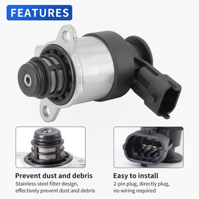 • 【Features】 The Improved Stock Inlet Metering Valves come with improved screens, compared to the 80-micron single-layer original screens, the upgraded system protection valve screen is rated at 25 microns, which can more effective in preventing debris from entering the remaining parts of the fuel system, enhancing engine longevity and efficiency