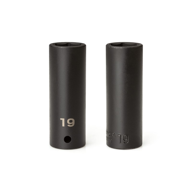 - Includes 4-pc. 1/2 inch drive deep 6-point inch impact sockets: 3/4, 13/16, 7/8, 15/16 in.; 4-pc. 1/2 inch drive deep 6-point metric impact sockets: 17, 19, 21, 22 mm; 1-pc. 1/2 inch drive impact extension: 3 in.; Storage case