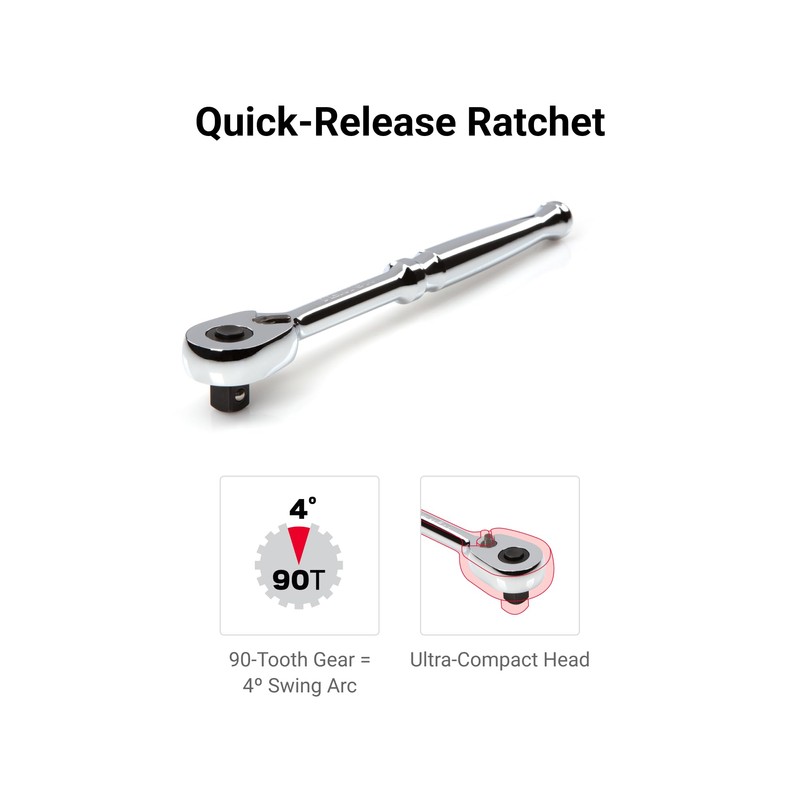 - Includes 19-pc. 3/8 in. drive standard 6-point metric sockets: 6, 7, 8, 9, 10, 11, 12, 13, 14, 15, 16, 17, 18, 19, 20, 21, 22, 23, 24 mm; 19-pc. 3/8 in. drive deep 6-point metric sockets: 6, 7, 8, 9, 10, 11, 12, 13, 14, 15, 16, 17, 18, 19, 20, 21, 22, 23, 24 mm; 1-pc. 3/8 in. drive 90-tooth quick-release ratchet: 8 in.; 1-pc. 3/8 in. drive magnetic hex bit holder; 3-pc. 3/8 in. drive extension bars: 1, 3, 6 in.; 1-pc. 3/8 in. drive universal joint; Socket and accessories rails and tray