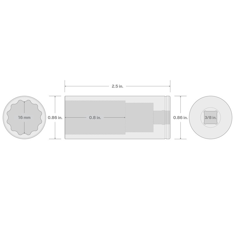 TEKTON 3/8 Inch Drive x 16 mm Deep 12-Point Socket | SHD13316