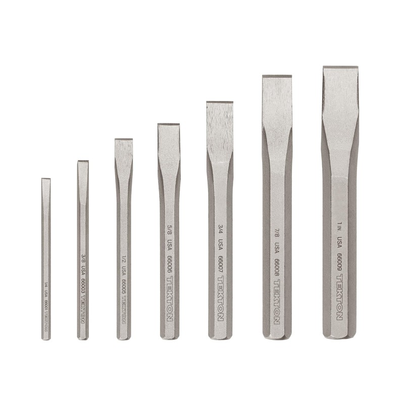 - Includes 7-pc. cold chisels: 1/4, 3/8, 1/2, 5/8, 3/4, 7/8, 1 in.