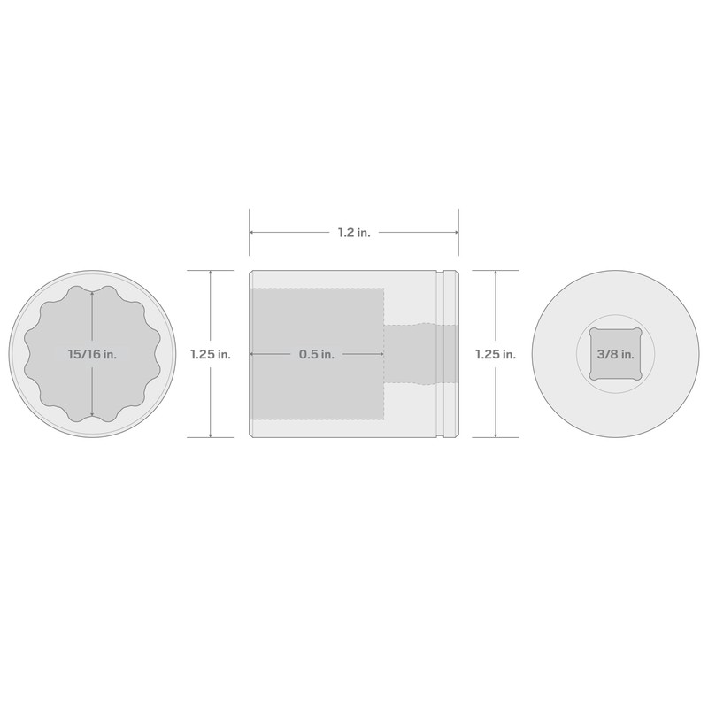 Tekton 3/8 inch drive 12-point sockets are an exact fit for double hex fasteners and also work with hex and square shapes. They're designed to grip the sides and not the corners of the fastener heads, which prevents round-off. The large, die-stamped markings are permanently impressed into the material and optimized for readability.