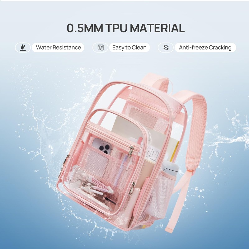 - Sturdy & Durable: These see through backpacks are made of extra thick and durable TPU material that can withstand the weight of your essential items. The large clear backpack has delicate stitching and striped straps to enhance its weight-bearing capacity and prevent tears to ensure long-lasting use