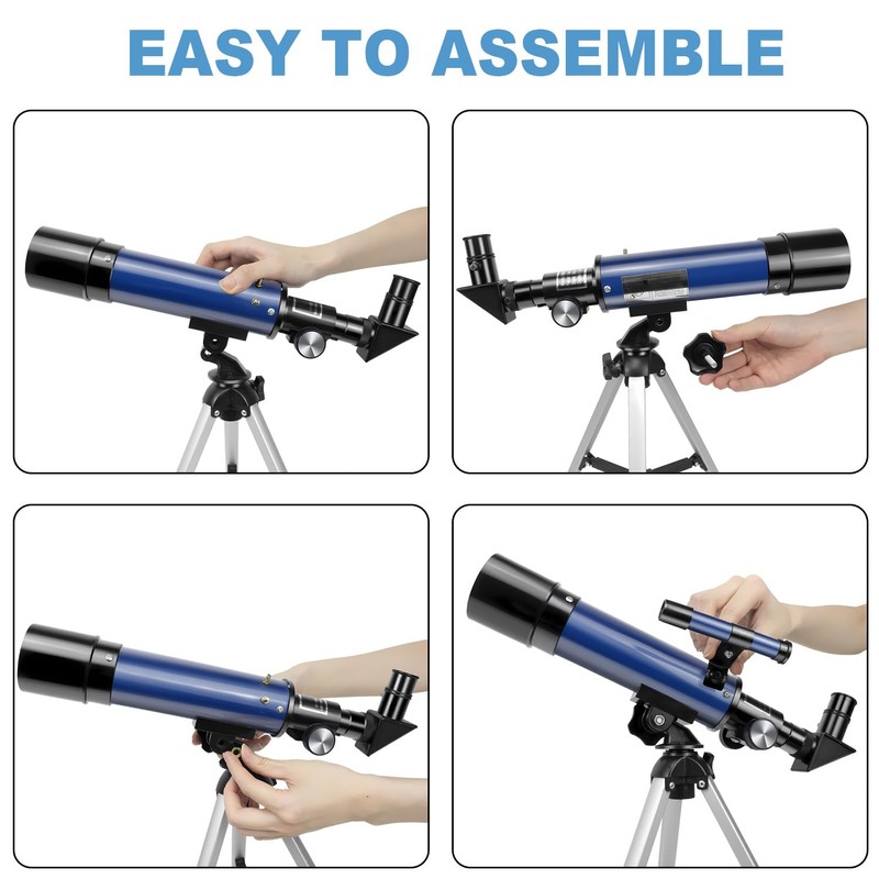 - 🌟【Easy to Use】No-tools requirement, just take a few minutes to finish assemble. Kids can finish assemble and disassemble by themselves, so it is very convenient to them to take the telescope to outdoor.
