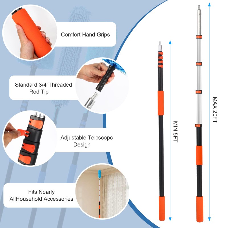 Telescopic Extension Pole Reach to 28FT,Paint Roller Extension Pole, telescoping Pole with Flip-Lock Design, Multi-Purpose extendable Pole for Windows Cleaning Paint Roller, Duster(Orange-20ft)