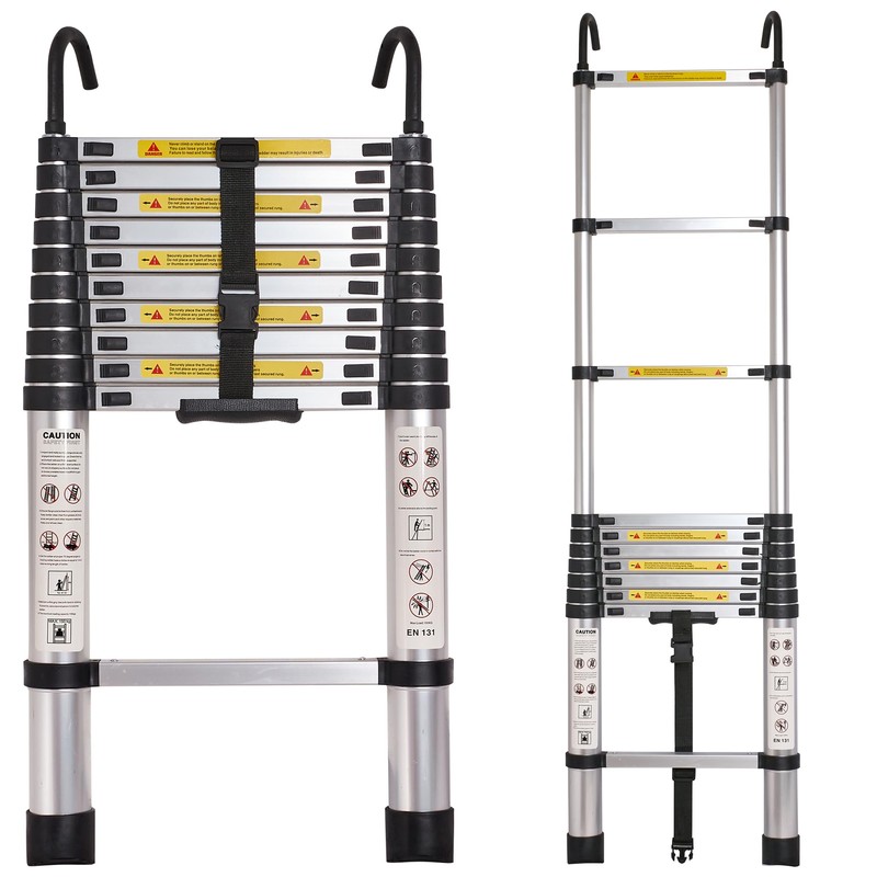 - 【ALUMINUM MATERIALS,STRONG & DURABLE】Crafted from premium, thick aluminum alloy with an oxidized surface, our telescoping ladder is built to last,not easy to shake.Reinforced nylon fiber in the plastic parts enhances the ladder's strength, supporting up to 330 lb/150 kg,and the ladder is more durable, rain proof, corrosion proof and rust proof, which improves the service life of the ladder.