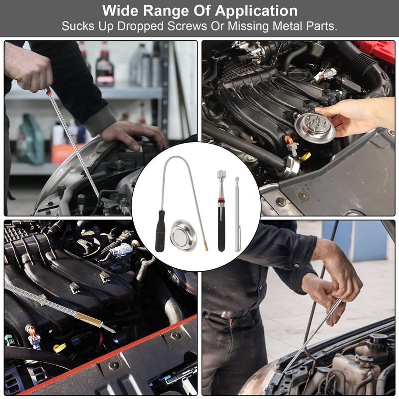 • 【Wide Range of Applications】This telescopic magnet is suitable for automotive repair, home improvement, electronic equipment maintenance and more. Whether it's removing dropped screws from the engine compartment or retrieving lost metal parts from the crevices of furniture, it's easy to handle.