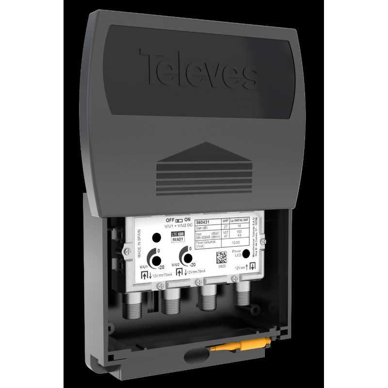 - Low noise and high output level (47dBmV UHF, 43dBmV VHF)