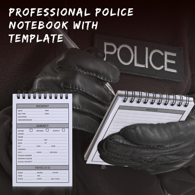 - Public Safety Police Notebook: our police field interview notebook could make taking notes in the field more easy, which are made of 0.06 inches/ 1.5 mm thick backing plate, supply the extra stability for a sturdy writing surface; Also these police notebooks with template, make notes more concise and clear