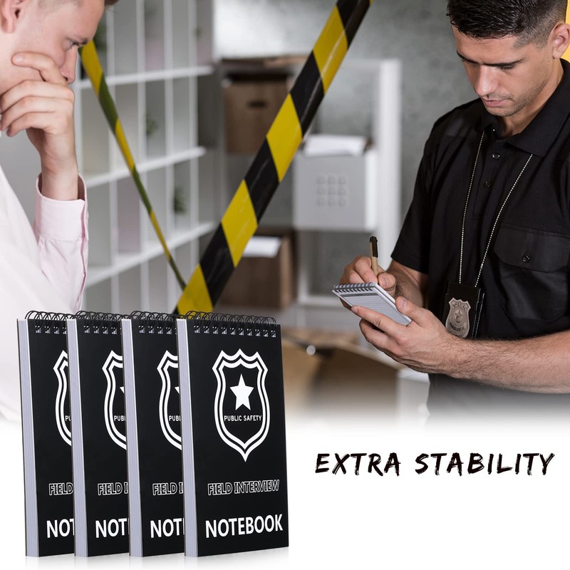 - Public Safety Police Notebook: our police field interview notebook could make taking notes in the field more easy, which are made of 0.06 inches/ 1.5 mm thick backing plate, supply the extra stability for a sturdy writing surface; Also these police notebooks with template, make notes more concise and clear