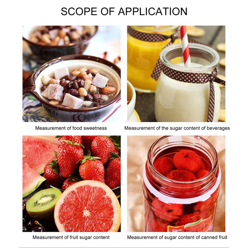 - PRÄZISE ZUCKERGEHALTSMESSUNG: Dieses Brix Refraktometer 0-32% hat eine Genauigkeit von ± 1 % im Bereich und eine Auflösung von 1 %. Der Zuckergehaltmesser kann zur Beurteilung der Reife von Früchten, der Reinheit von Honig und der Qualität von Getränken verwendet werden. Er hilft dabei, einen zu hohen Wassergehalt frühzeitig zu erkennen und das Risiko der Gärung zu vermeiden. Er eignet sich auch zur Messung des Zuckergehalts in Sirup und Marmelade.