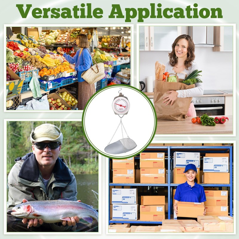 - Versatile Application: suitable for both personal and commercial use, this hanging weight scale with scoop set can be utilized in a variety of environments; Whether you're weighing produce at the market, measuring ingredients in a kitchen, or gauging the weight of a package at a shipping center, these scales have the flexibility to meet your needs