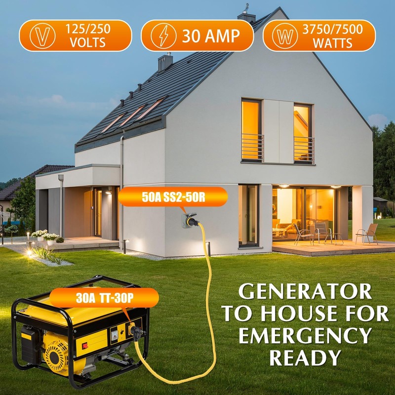 - Durable TT-30P Male Plug: Built with a 30A NEMA TT-30P 3-prong male plug, this adapter is ideal for connecting your 30A generator to a 50A RV. The grip handle makes plugging and unplugging easier, secure, and effortless with no assembly required