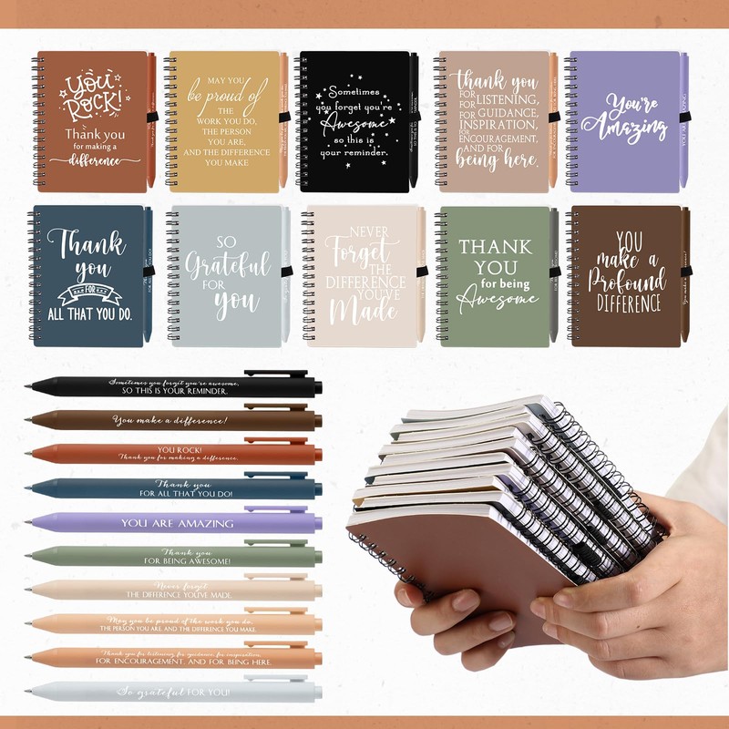 Tellingyou Employee Appreciation Gifts Teacher A6 Kraft Notebook Journals and Motivational Ballpoint Pens to Do List Memo Pads Inspirational Notepads for Coworker(20 Pcs/ 10 Set)
