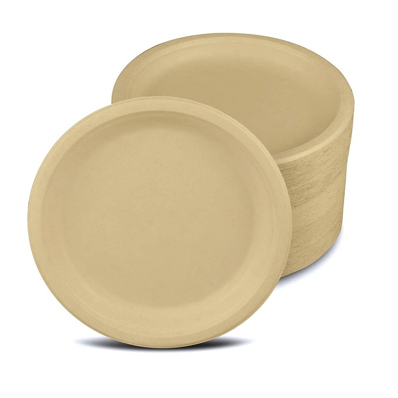 Tellus Products, Eco-Friendly (125-Count) 9-Inch Disposable Plates - Compostable, Durable Tableware - Grown & Made in the USA - No PFAS Added (Natural Color)
