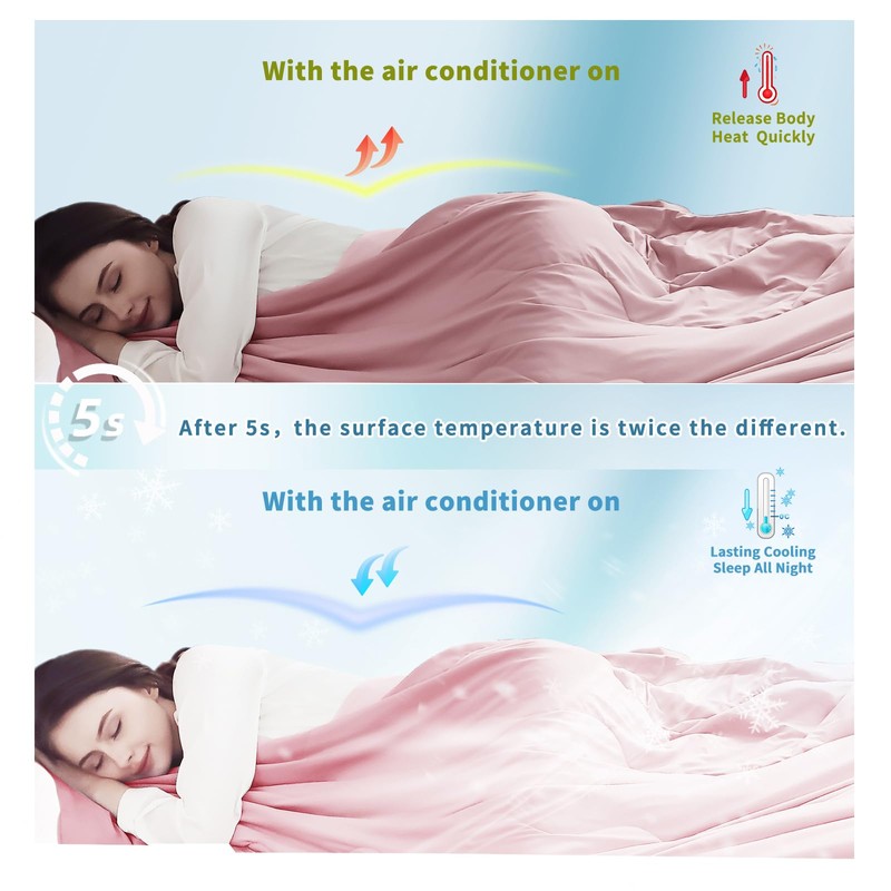 - 【Machine Washable & Easy to Care】 : This all-season cool blanket can be machine washed directly, which is very simple and convenient in our daily use. You can wash it gently in the washing machine in cold water and then dry it on low temperature. It is best to put it in a laundry bag when cleaning. Please do not bleach it. No dryer, hang in a cool place, no tumble drying. Note: This comforter can not be dried, it will affect the cooling effect. This bedding is best used directly, skin friendly.