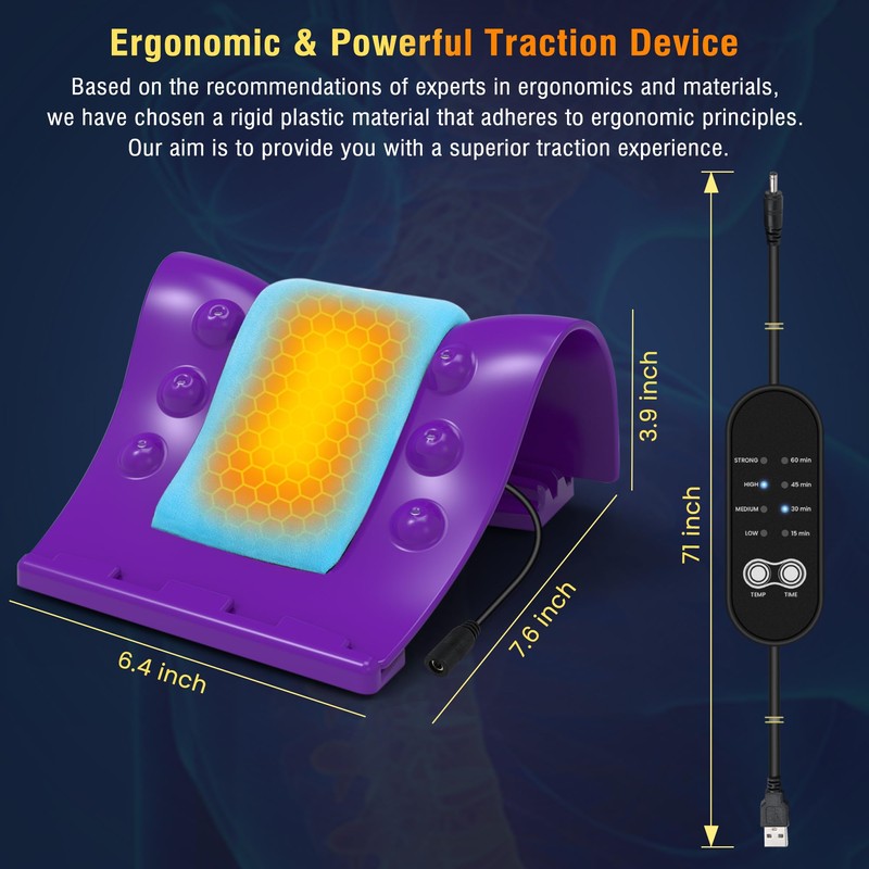 TEMASH Cervical Traction Device - Heated Neck Stretcher for Instant Neck Pain Relief, Tension Headache Reduction, and TMJ Pain Relief, with Cervical Spine Pillow to Correct Neck Hump(Purple)