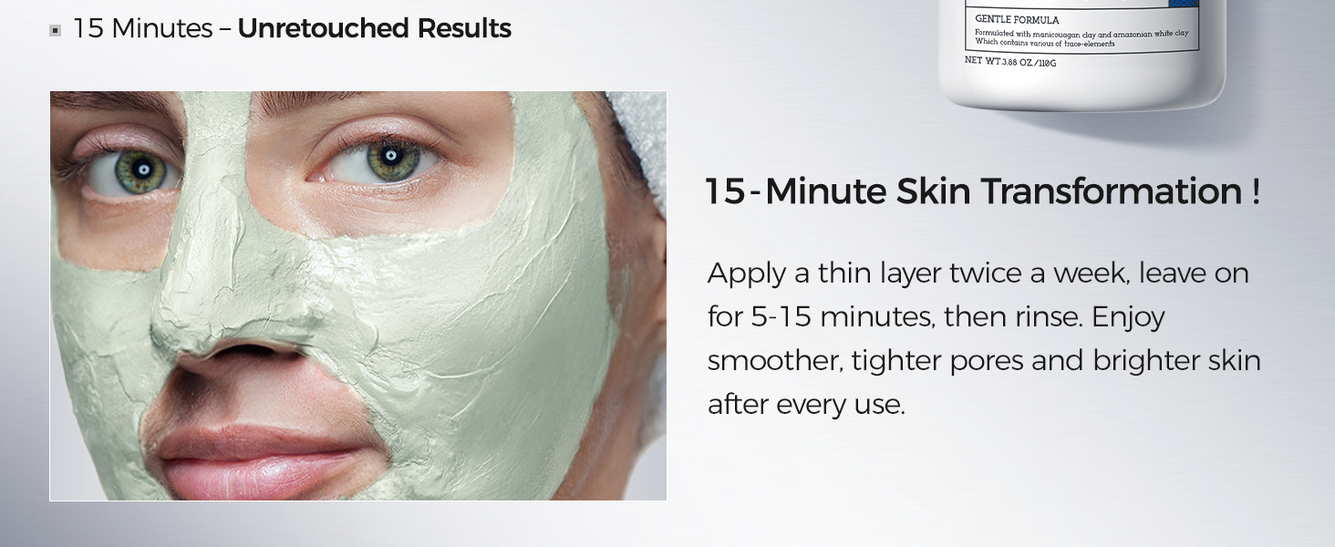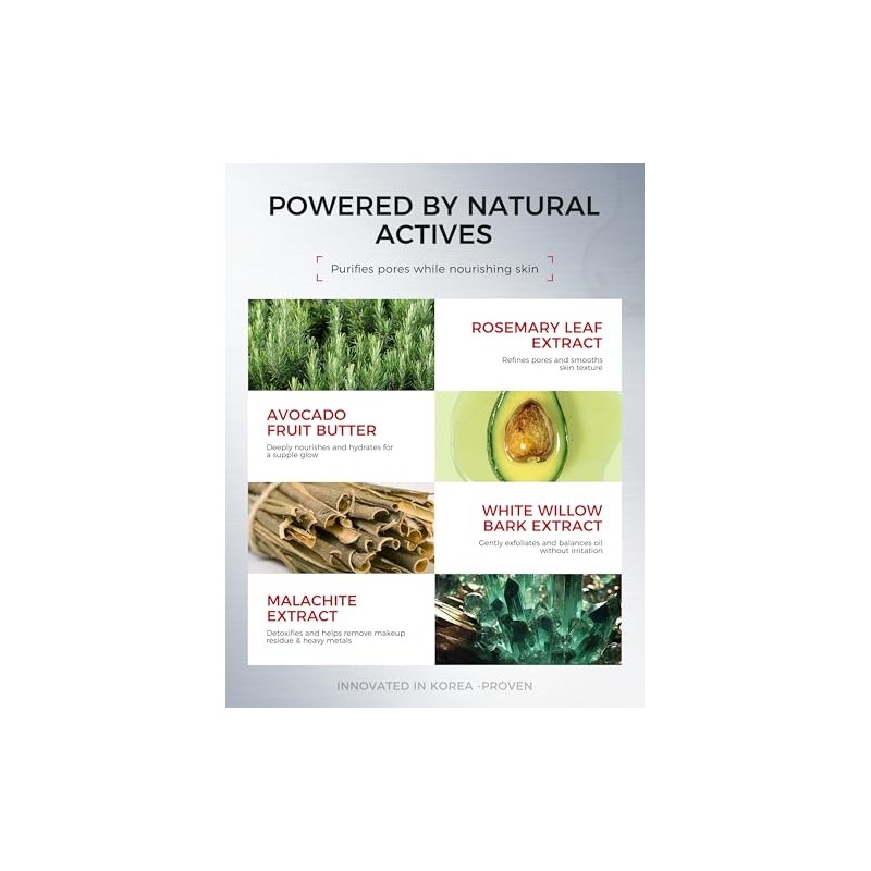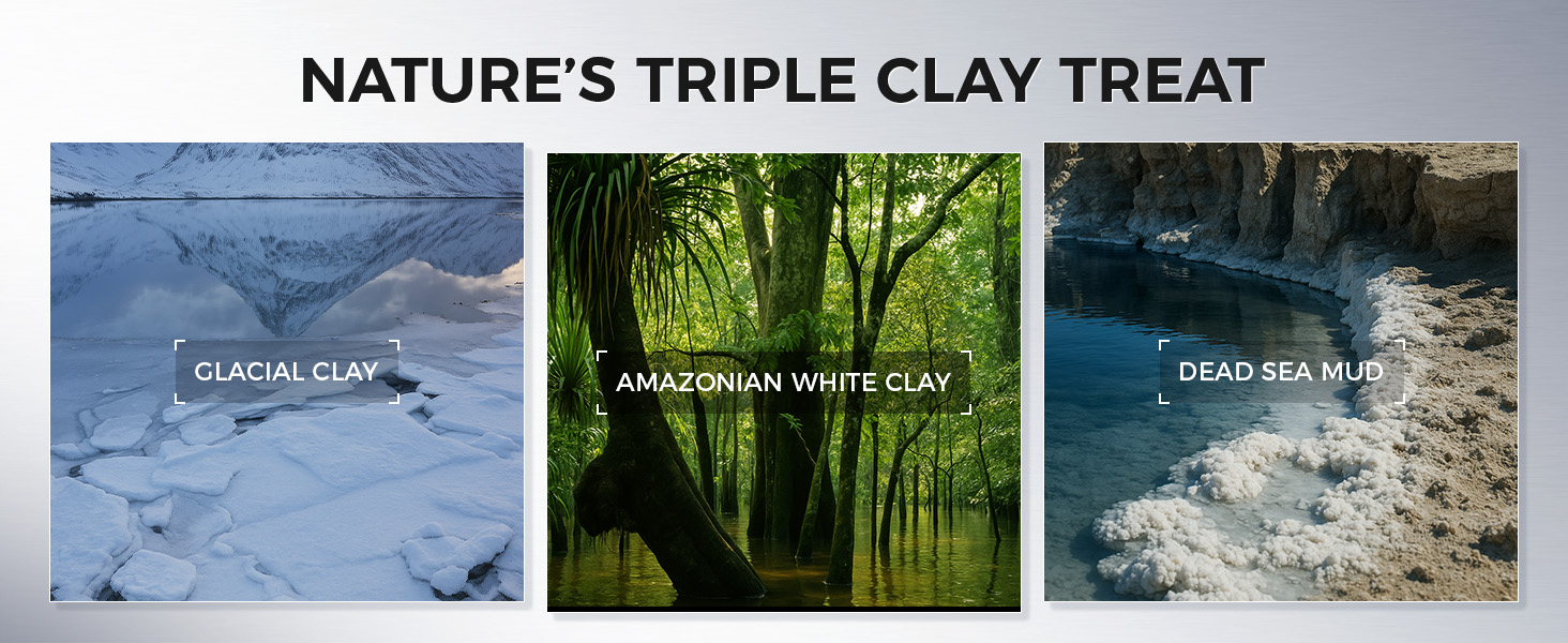 - Triple Mud Formula: A blend of kaolin, bentonite, and volcanic clay deeply cleanses pores, removes impurities, and absorbs excess oil without over-drying