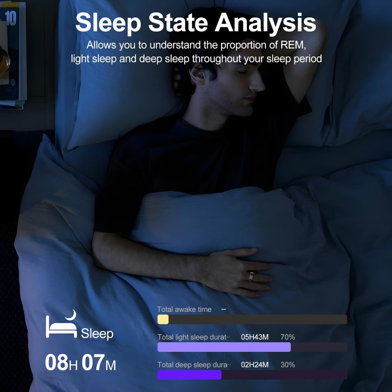 - 【Multiple Options & No Subscription Fees】The smart ring is available in 3 colors and 4 sizes for you to choose from 18.1mm (#8) 18.9mm(#9) 19.8mm(#10) 20.6mm(#11). It can easily track your sleep status, body data and more through the mobile app WITHOUT any subscription fees. (Please measure the circumference of your finger according to the diagram on the details page before purchasing)