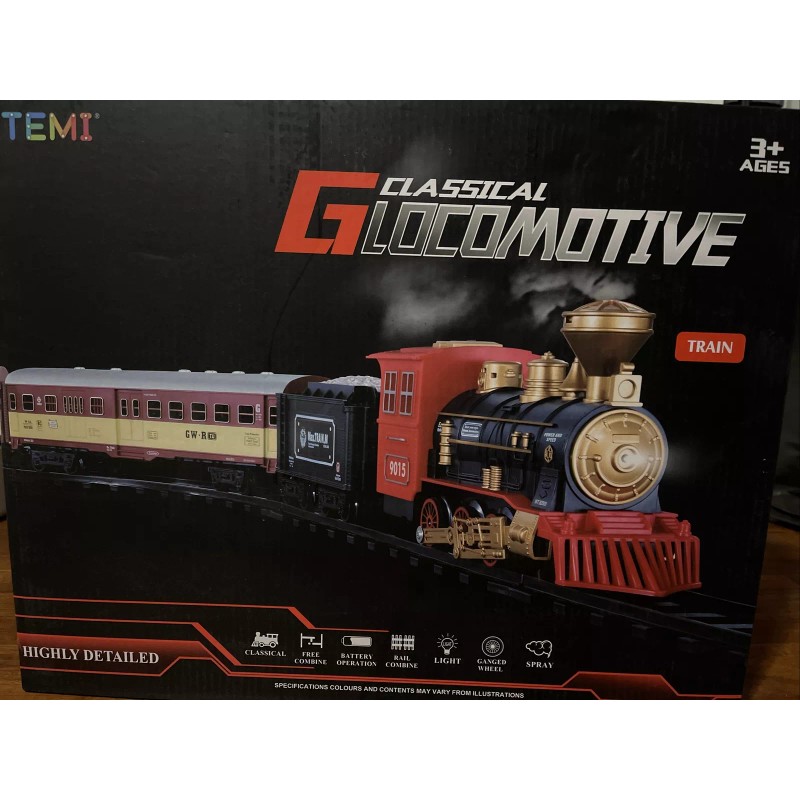Temi G1 Classical Locomotive Glocomotive Train Set Steam Effect Battery Operated