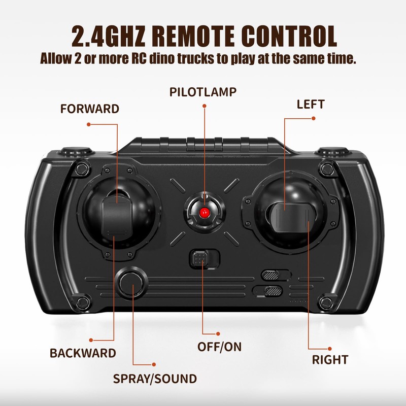 - Water Mist Spray: One of the standout features of this dinosaur truck is its water mist spray. With the press of a button, the truck can unleash a refreshing mist, creating an exciting and immersive playtime experience.