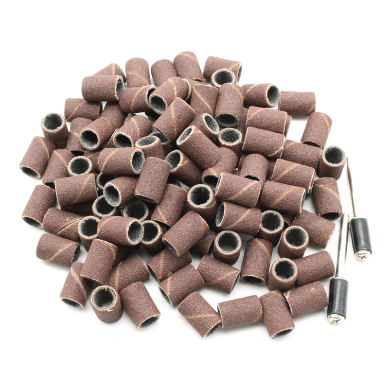- 100 PC 1/4" (6.35mm) sand drum with 2 Mandrel for dremel grit 180 medium