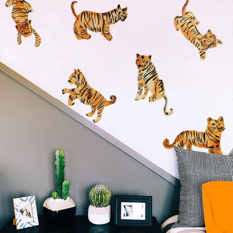 - DIY set includes 6 watercolor tiger wall decals; Assembled on (3) 17.25” x 9.75” sheets