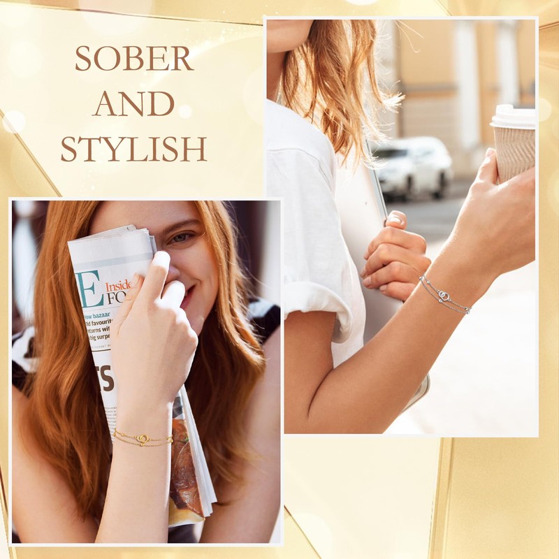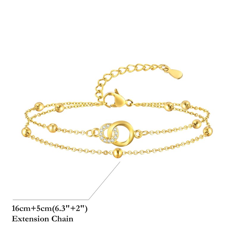 TempBeau Women's Bracelet with Möbius Ring Pendant, Bracelets Women Made of Copper, 18K Gold-Plated Double Ring Bracelet for Mum, Wife, Girlfriend, Women's Bracelet, Girlfriends Gift for Birthday,