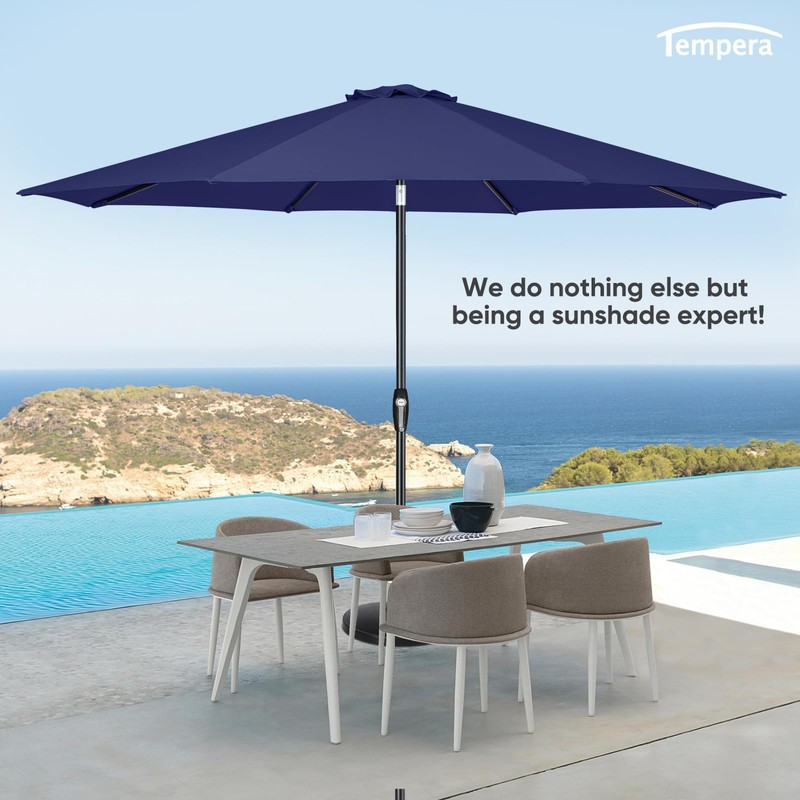 Tempera 10ft Patio Market Outdoor Table Umbrella with Auto Tilt and Crank,Large Sun Umbrella with Sturdy Pole&Fade resistant canopy,Easy to set, Navy