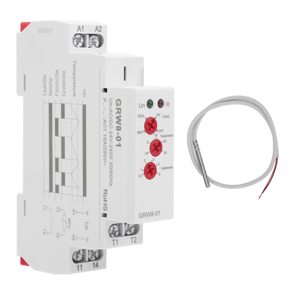 Temperature Control Relay GRW8-01 Temp Controller Electronic Repeat Relay LED Indicate High Low Temperatures Monitor with Probe