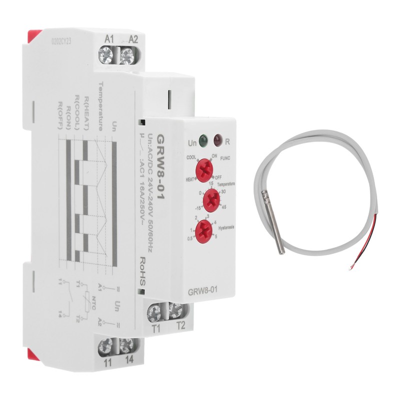 Temperature Control Relay LED Indicate High/Low Temperatures Monitor with Probe GRW8-01