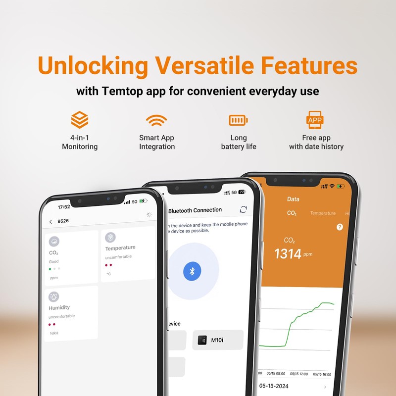 - 【Smart Connectivity】 Sync the device with our user-friendly mobile app via Bluetooth to track and export your data at your convenience. Keep your device up to date effortlessly with OTA updates. Get insights into your environmental conditions at your fingertips!