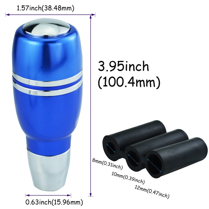 - Applicable: This shift knob gear is widely compatibility for most automatic vehicles with button lock, which has three different sizes of mounting adapters with inner diameter of M8, M10, M12 (0.31 inch, 0.39 inch, 0.47 inch) .