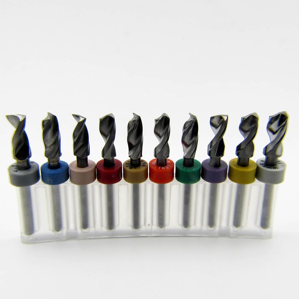 Ten Size Solid Carbide Drill Bit Set 4.50mm - 4.85mm .177" - .191" with 1/8" Shanks