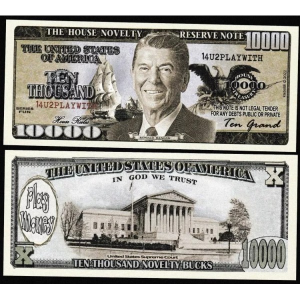TEN Thousand Ronald Reagan Play Money Dollar Novelty Note - Lot of 10 Bills