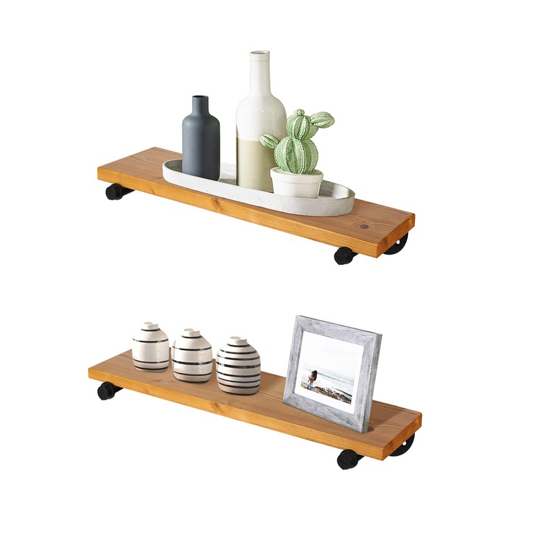 \- BRING NATURE INTO YOUR LIVING ROOM: Take your contemporary or traditional decor to the next level with the TEN49 pipe bracket wooden shelves, which will add a touch of natural elegance to your space. \- IMPRESS YOUR GUESTS WITH YOUR RUSTIC SHELVES: Upgrade your rustic, farmhouse or French country interior decor with our heat-treated, solid wooden book shelves and modern industrial iron pipe brackets. \- FLOATING PIPE SHELVES FOR EVERY STYLE: Our mildew-resistant wall mounted hanging shelves are ideal for your minimalist, transitional, coastal, Scandinavian, urban modern or modern country home decor. \- INSTALL THEM YOURSELF WITHOUT ANY FUSS: Just follow the simple instructions and you will be able to mount your decorative pipe shelves with wood with zero fuss! Plus, they are easy to clean too! \- MULTIPLE SIZE & Color: We offer a variety of styles to choose from depending on your preferences, wants and needs. Besides different sizes for the wooden shelf, we also have different color for the wooden shelf. There will be one that suits your needs best!