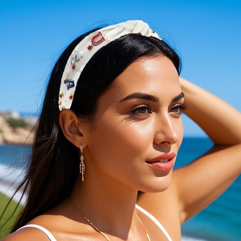 - Patriotic Colors: The headband features the classic red, white, and blue color scheme of the American flag, adorned with crystals that add a touch of sparkle and glamour.