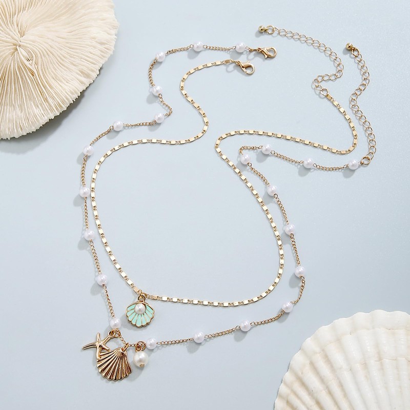 TenaLucy Shell Necklace Women, Gold Shell Chain Charm Necklace for Women Pearls Starfish Shell Boho Chain Women for Women Summer Beach Holiday Beach Surfer, Copper, No