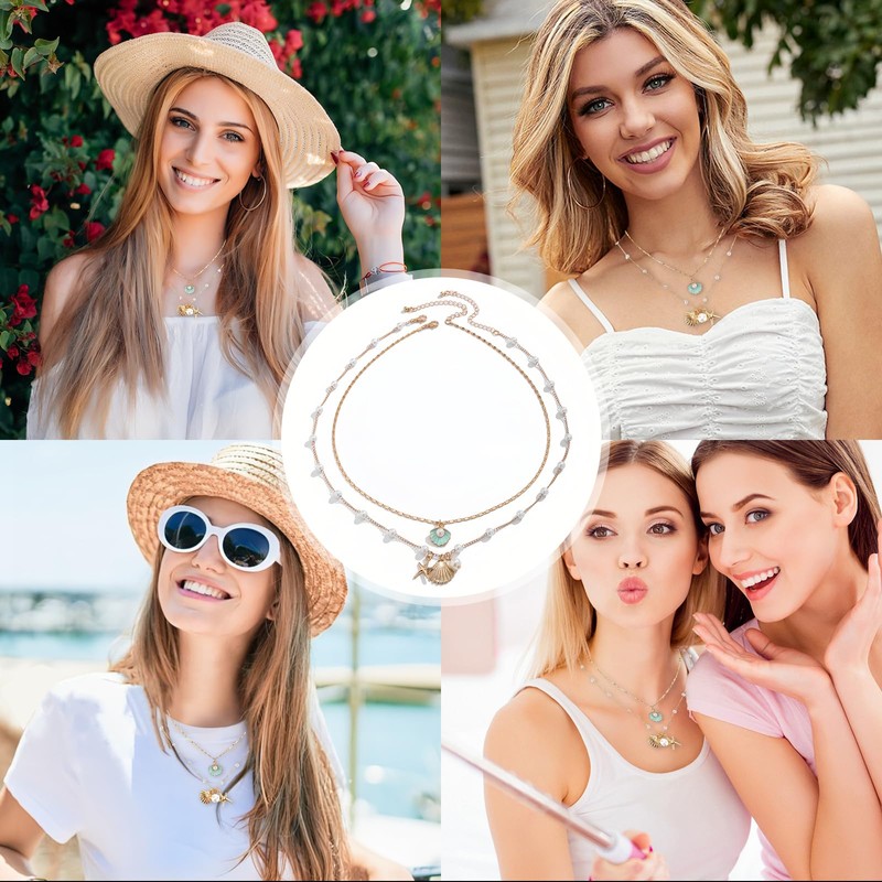 - Summer style: this women's shell necklace is a perfect piece for the summer beach. Its design fits perfectly with the summer and beach feeling and is a must-have for anyone who loves surfer style. With its chic style and eye-catching gold chain, this necklace sparkles in the sun and adds a touch of beach chic to your summer look.