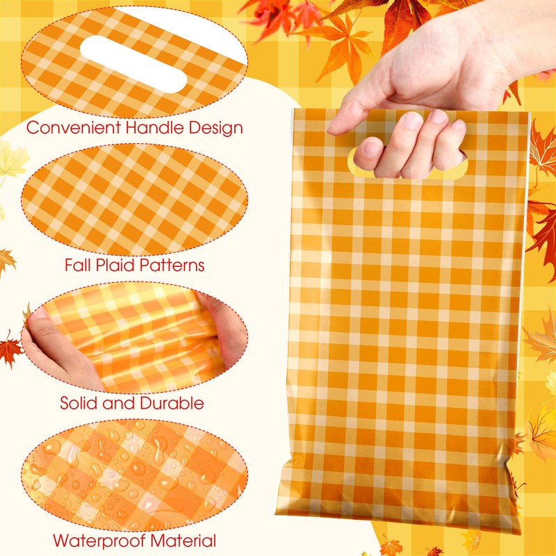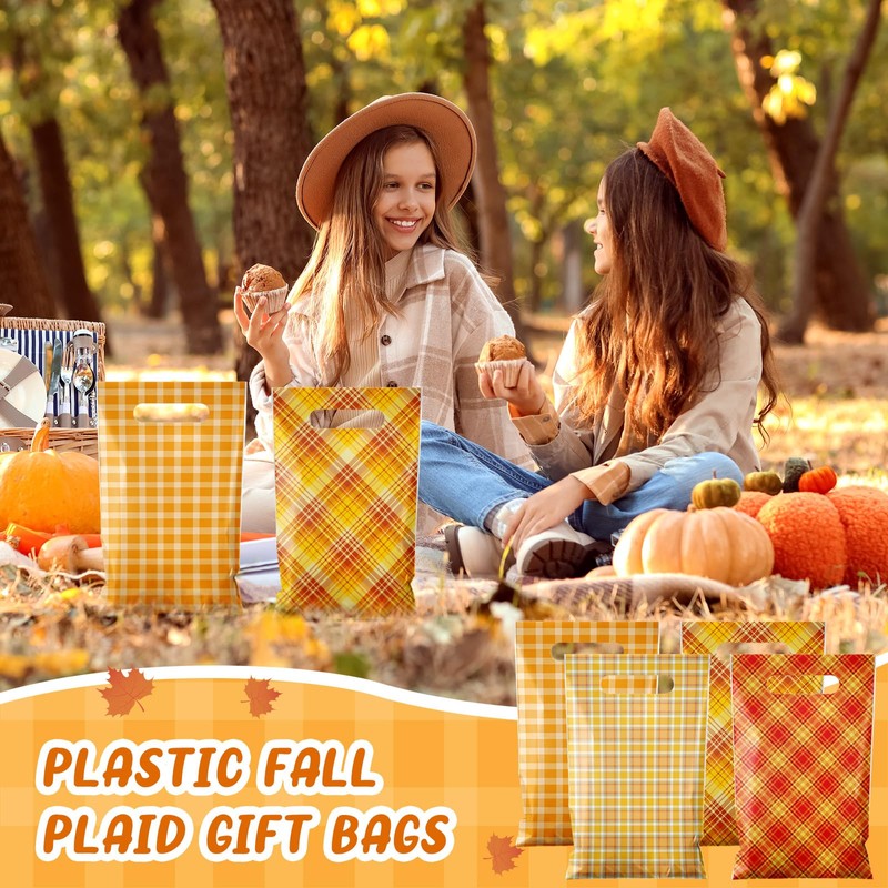 - Sufficient Quantity: you will receive 48 pieces of fall plastic gift bags with handles in 4 different patterns; 12 pieces in each pattern; Sufficient quantity and different classic plaid design can meet your package needs, and replacement