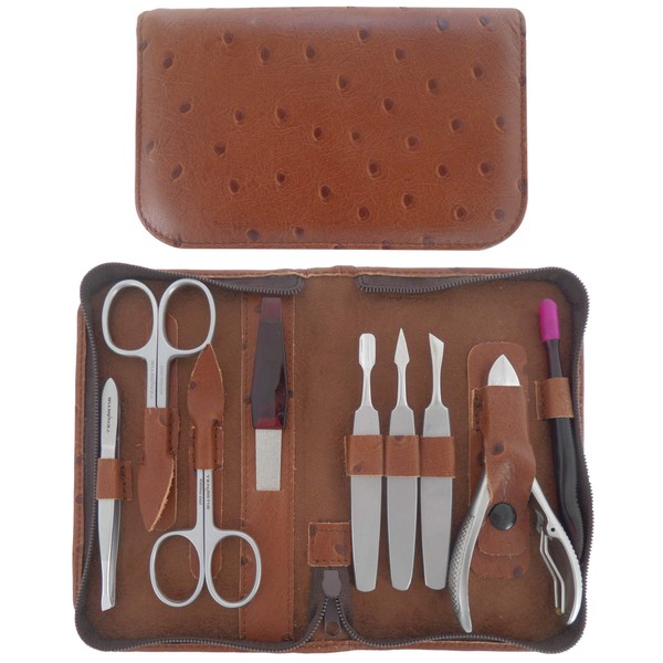 Tenartis 9 Piece Stainless Steel Manicure and Pedicure Case Real Leather with Zip