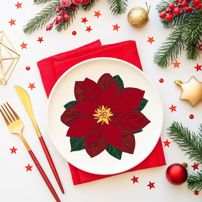 - Embellish Your Christmas Atmosphere: the striking poinsettia pattern on the Christmas dinner napkins will attract attention and increase Christmas atmosphere tenfold; Whether at home or in office, lift the festive spirit with these beautifully printed napkins