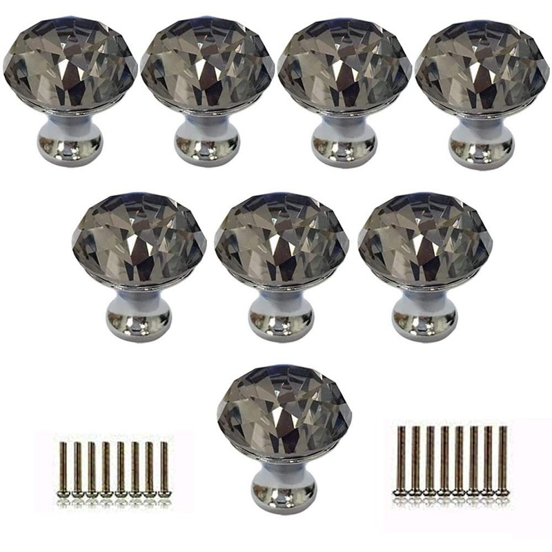 Tencro 8pcs 30 mm Diamond Shaped Luxury Crystal Knobs Glass Knobs with Screws for Drawer Door, Cabinet Door, Cupboard Door, Kitchen, etc. - Grey