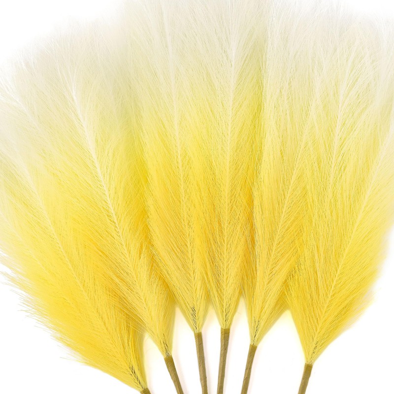 TENDER EPOCH 6 PCS Faux Pampas Grass Arrangement - 18"/45cm Artificial Fluffy Pompous Grass Stems for Boho Chic Home and Wedding Decor (Yellow Gradient)