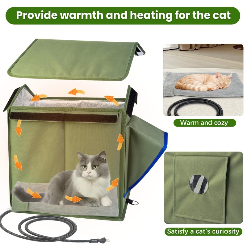 - 【Easy Assembly and Portability】 Setting up the heating cat house for outdoor cats is quick , with no tools required. Only need to follow the easy instructions of cat house outdoor to finish the installation. It easy to move relocate as needed,whether you're setting it up indoors, on a porch,in the yard or in a garage.