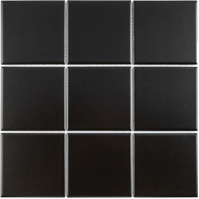 Tenedos 4x4 Square Matte Porcelain Mosaic Floor and Wall for Kitchen Backsplash, Bathroom, Accent Wall (11 Sheets/Case) (Black)
