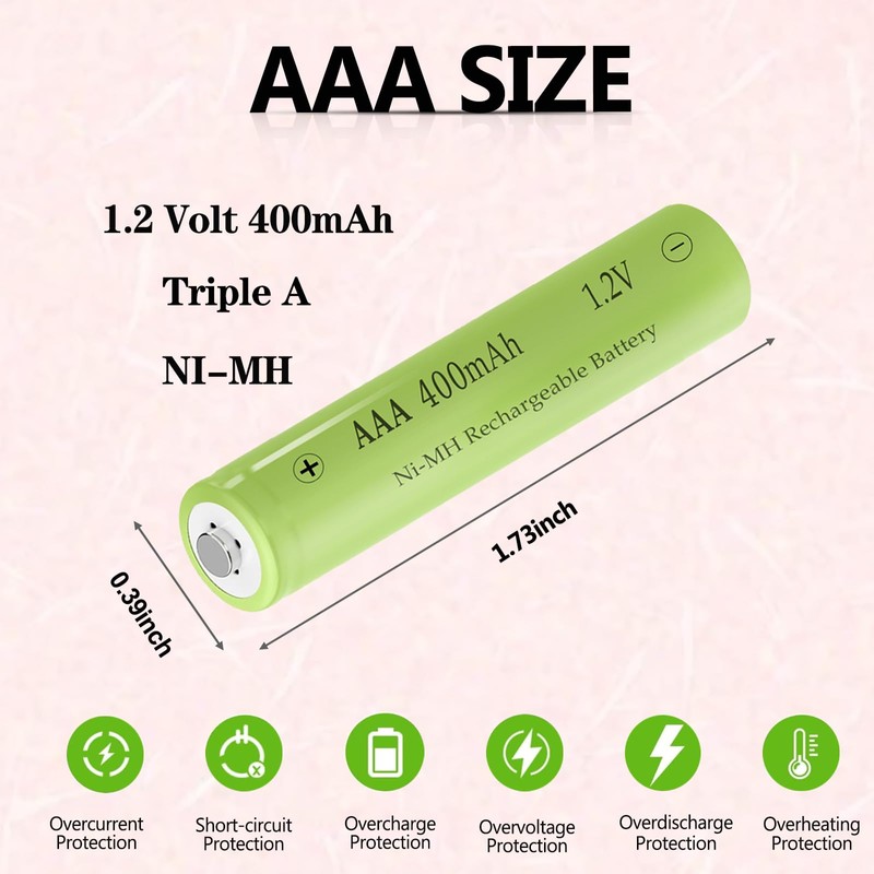 - Pre-Charged:AA A400mAh Nickel hydrate batteries are pre-charged 30%, so please fully charged them before first time to used