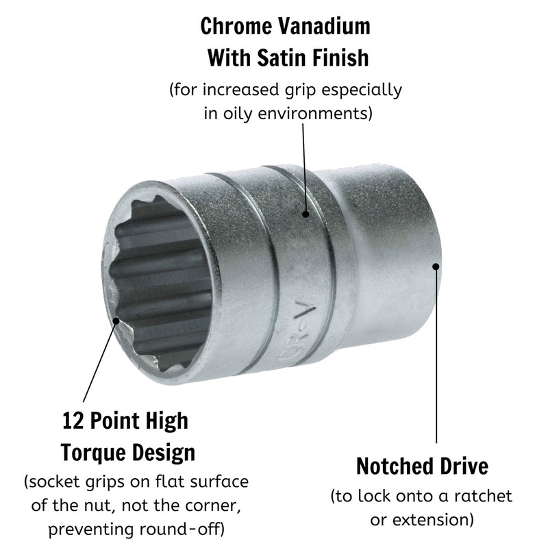 - High-strength chrome vanadium steel socket bit provides superior torque for greater turning power