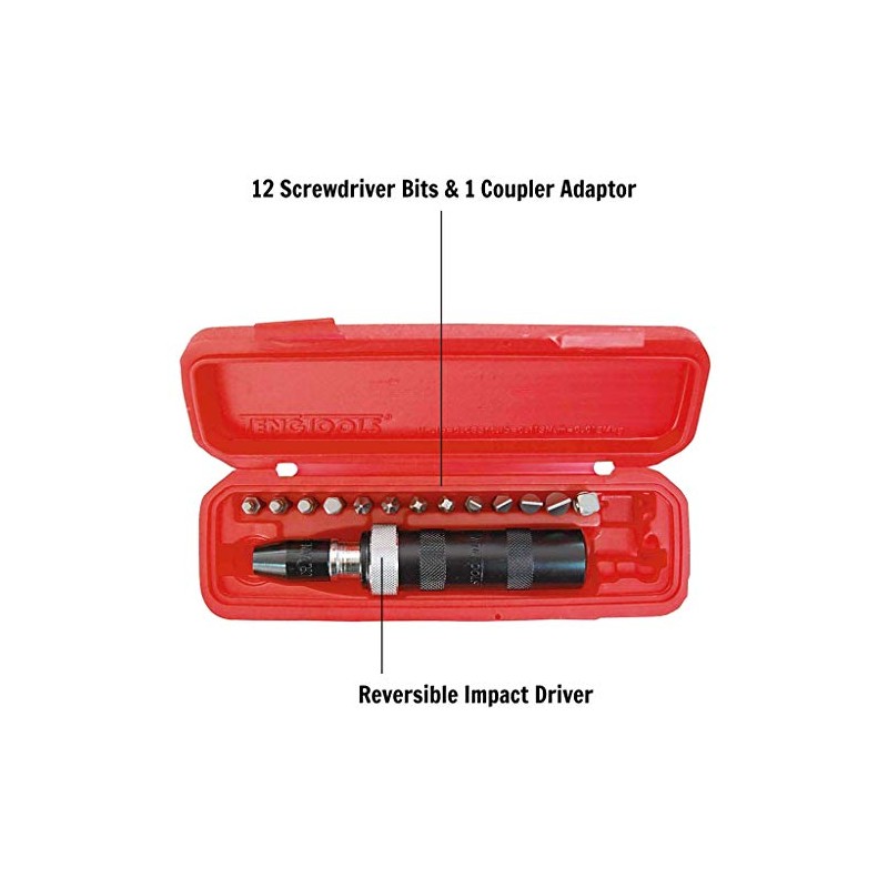 - The set comes complete with 12 screwdriver bits for slotted heads, Phillips heads and internal hex screw heads and is supplied in a handy storage case
